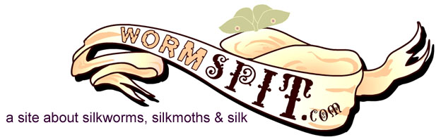 The Luna moth is probably the best-known of the American silkmoths. Although it doesn't produce a large amount of silk, and isn't really practicable for textile use, I am rearing it for sake of its beautiful green wings. I grew up with these flitting through the woods near my home in the piney woods north of Houston; now that I live in Dallas, I don't see them much. Luna moth caterpillars eat a variety of trees, including walnut, pecan, and sweetgum. I am raising these on pecan, because I have a tree in my yard. Fresh pecan branches have a tendency to wilt - if you pick stems that have second-year wood on them, they fare much better.