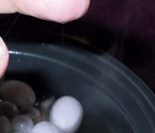 This is what it looks like when I've dropped the cocoon, and I have the filament on my finger. Emperor's Clothes, hey?