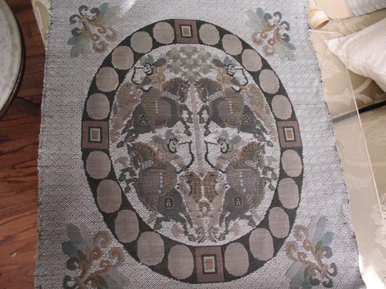 This piece is based on a design (on a piece of some other medium, I couldn't figure out what) in the Shoso-in Treasure House, a museum founded in 800 AD.