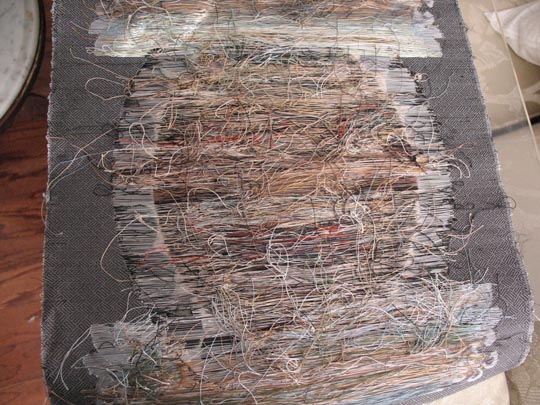The silk makes long floats on the back, but because of the sturdiness of the paper warp, it doesn't cause buckling. That is, when Mihoko does it. Mine kinda buckles, but it's getting better.