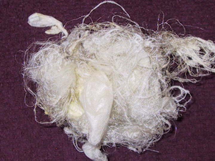This is the pile of noils; it's silk waste and cocoon cradles. You can use this in spinning, or add it to your handmade soap (in the lye water).