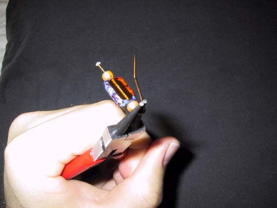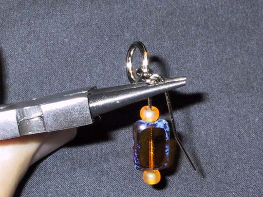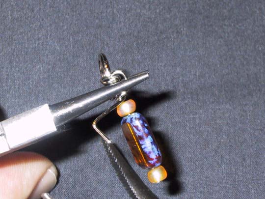 Then, I pick the whole thing up again with the round-nose pliers, holding it right below the ring attachment.