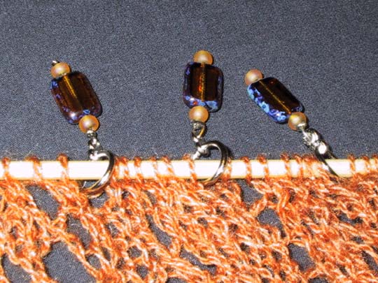 I saw somebody knitting along with really beautiful stitch markers, and decided I had to have some. I looked around, found a few vendors who carry different varieties, and decided, "I can do these." So, here we have a basic primer in how I did them.