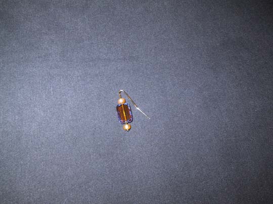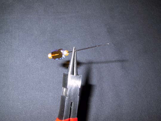 I can't take the picture of what really happens here, because I'm working the camera with one hand. While holding the bend in place with the round nose pliers, I took the needle-nose pliers and wrapped the tail of the head pin around the base of the loop.