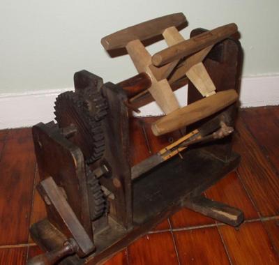 The Spinning Wheel Sleuth has published two articles on antique Japanese silk reelers; you can write to Florence Feldman-Wood to get a copy of one of the back issues. I was a contributing writer on the second article (in Issue 48: Update - Silk Reelers). The Spinning Wheel Sleuth's page has some detail photos of other silk reels.
