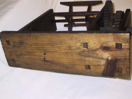 I've made this thorough set of measurements in order to share the machine with some wood-working friends. If you are interested in making a woodworker's plan, or creating a reproduction of the machine, and need additional measurements or photos, please let me know!